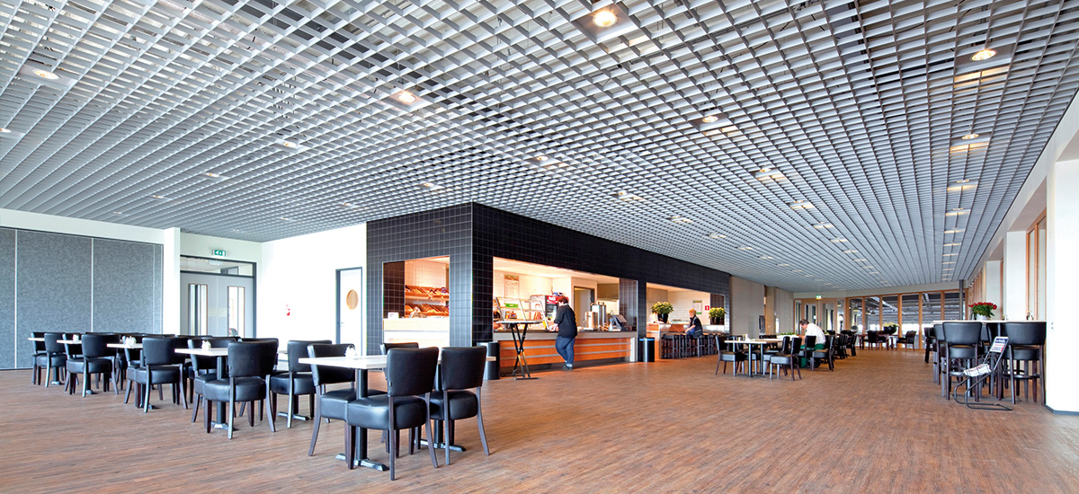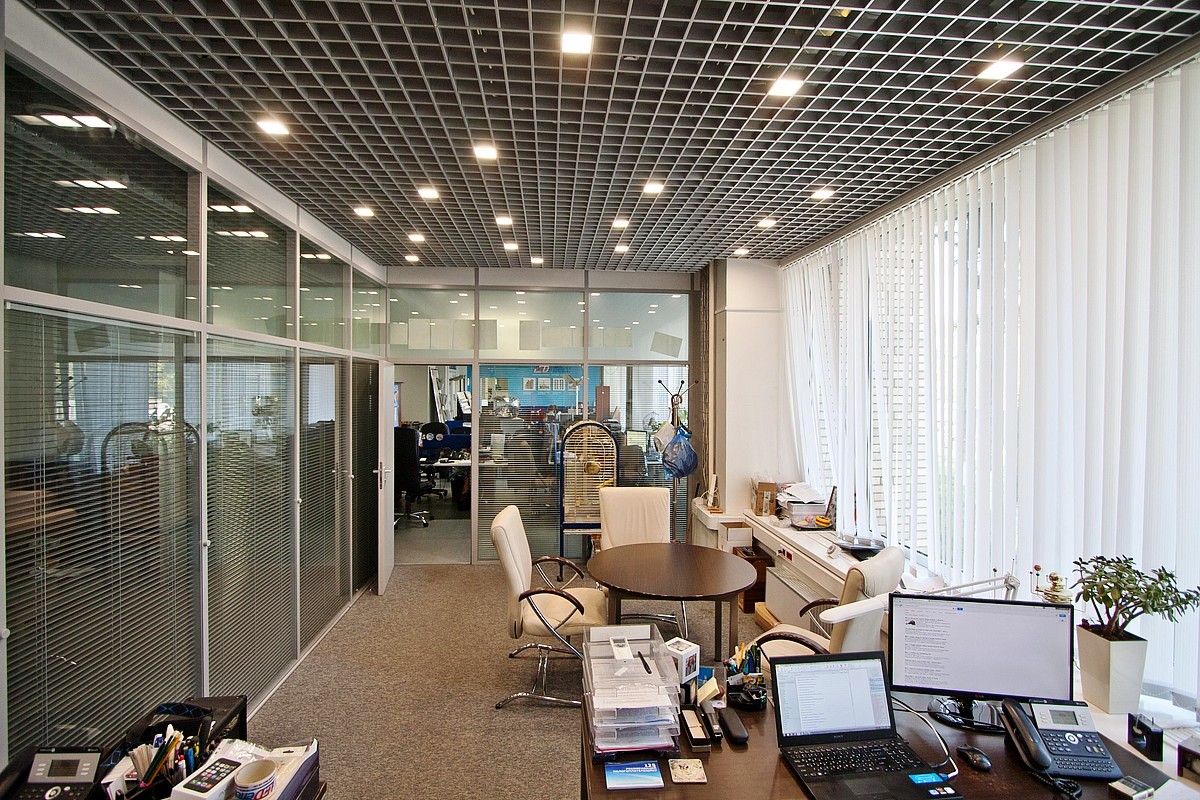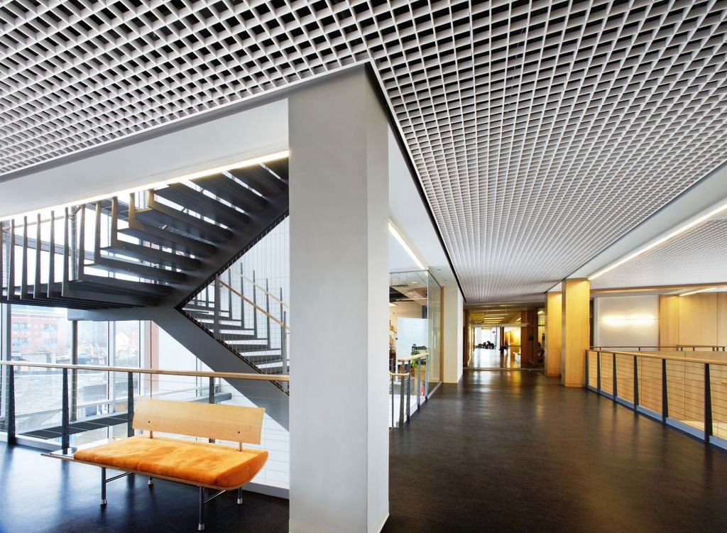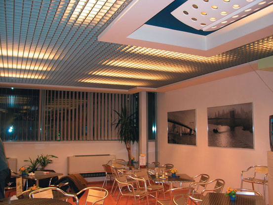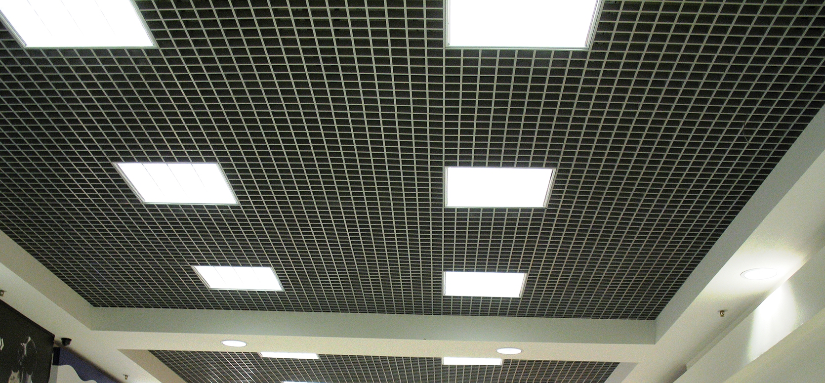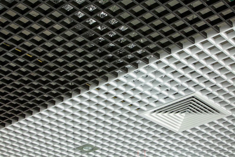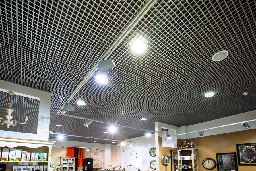 Разнообразие размеров создаваемых ячеек и расцветки профилей позволяет использовать растровую потолочную систему в обустройстве многих помещений. При этом создается некая иллюзия продолжения пространства, комната с таким потолком воспринимается по-новому.