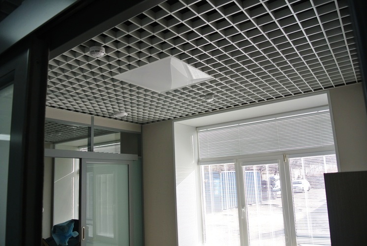 Ячейки на профиле могут быть разного размера. В зависимости от размеров ячеек можно добиться разного вида дизайна. Например, для помещений с высокими потолками следует выбирать потолки с большими размерами ячеек. Для низких потолков будет идеальной мелкая решетка.