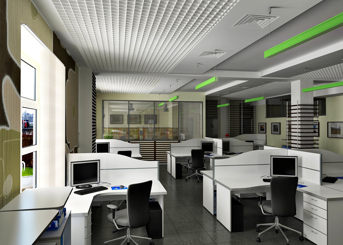 • Архитектурный дизайн  -возможность совмещения в одном пространстве (на одной подвесной системе) разноплановых потолочных элементов, путем чередования кассет и решеток.