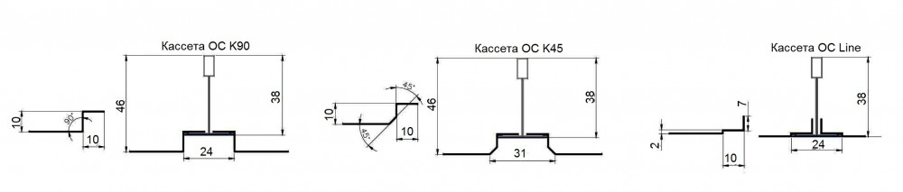 Кассетные потолки состоят из системы кронштейнов (подвесов), прикрепленных к перекрытию. В свою очередь, к подвесам крепятся направляющие (продольные и поперечные), образующие ячейки несущего каркаса и обеспечивающие жесткость всей конструкции. Декоративные алюминиевые кассеты устанавливаются в ячейках каркаса.